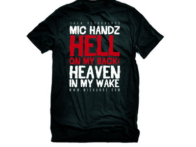 This is the Official "Limited Edition" Full color Title Art T-Shirt that is worn by Mic Handz and family at shows promoting the official release of the Hell On My Back: Heaven in My Wake album release that dropped at the Official Album Release party...